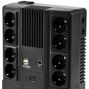 Тип ИБП: инверторный • Мощность: 1000 ВА • Выходной сигнал: синусоида • Интерфейсы: RS-232 • Разъемы: розетка с резервом