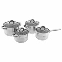 В наборе: кастрюли, ковш, 4 шт • Размер: от 16 см, до 20 см • Объем: от 2.1 л, до 3.9 л • Материал: сталь
