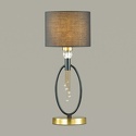 Настольная лампа декоративная стиля классика для гостиной, кабинета или спальни имеет размеры 200x485 мм. Арматура светильника окрашена в латунный и черный цвет. Лампы в комплекте - отсутствуют. В светильнике применяются лампы накаливания или светодиодная LED-лампа. Цвет плафонов - черный, с матовой поверхностью. Материал плафонов - металл, текстиль. Класс электробезопасности - I, степень пылевлагозащиты (IP) - 20. Максимальная мощность лампы (Вт) - 60. Светильник размещается на столе.