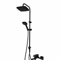 Душевая система. В комплекте: однозахватный смеситель для ванны с изливом, верхний душ d265 мм и ручной душ 110 мм с режимом самоочистки, регулируемый по высоте и наклону держатель, душевой шланг 1,5 м, керамический дивертор. Штанга с возможностью установки в старые отверстия. Цвет: черный матовый.