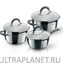 набор кастрюль • нержавеющая сталь • покрытие отсутствует • крышка стеклянная