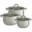 В наборе: кастрюли, 3 шт • Размер: от 18 см, до 24 см • Объем: от 2.9 л, до 6.6 л • Материал: сталь